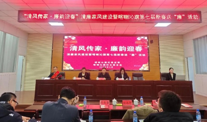 2月5日,喀喇沁旗纪委监委联合旗妇联在旗党校举办“清风传家·廉韵迎春”清廉家风建设暨第七届新春送“廉”活动,以多元形式为干部及家属送上“廉洁+新春”双重祝福,推动廉洁文化融入家庭、浸润人心。旗委常委、纪委书记、监委主任白永华出席并讲话,旗纪委监委、旗妇联相关领导、百余名干部家属及“清廉家庭”“最美家庭”代表参与活动。
