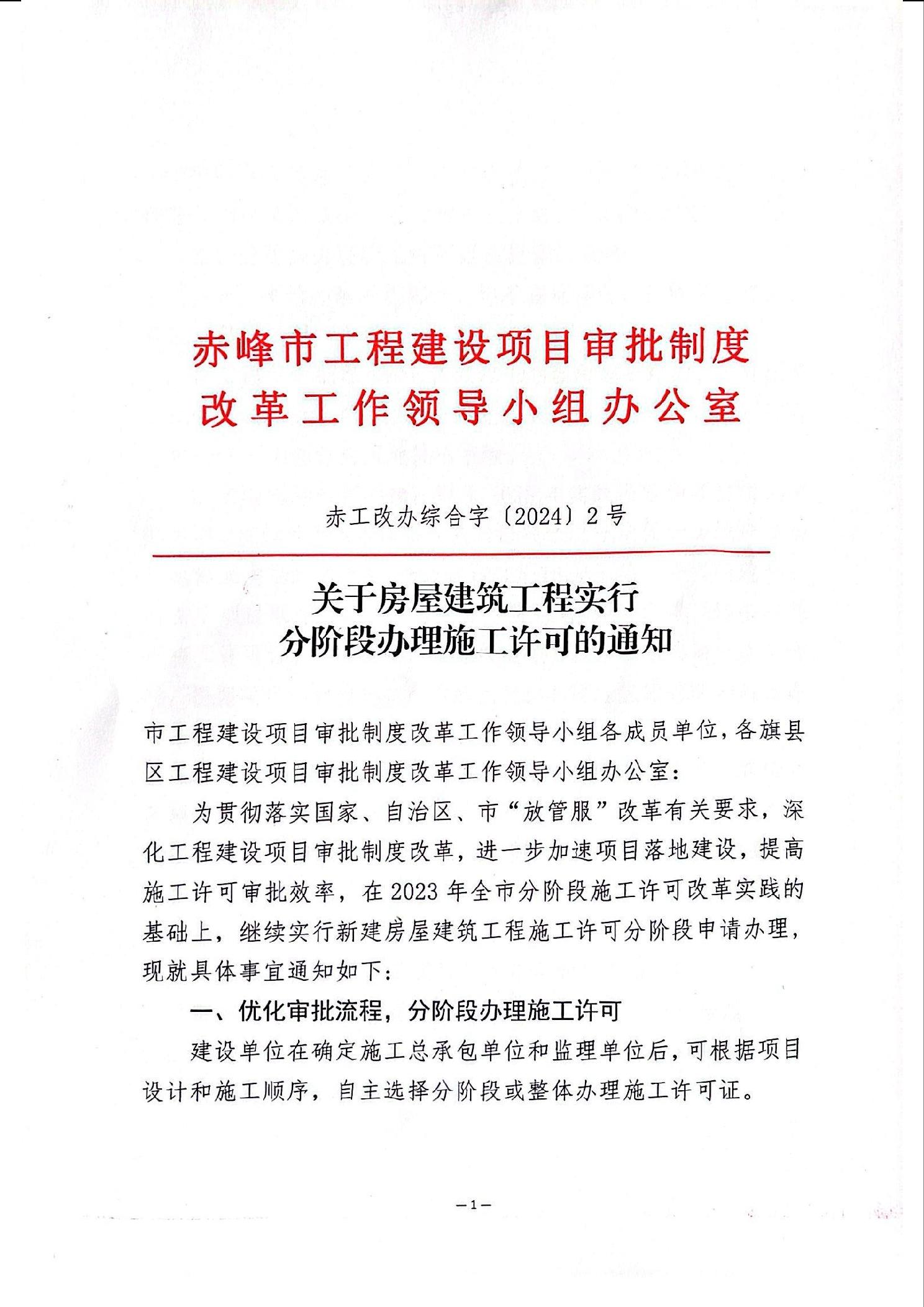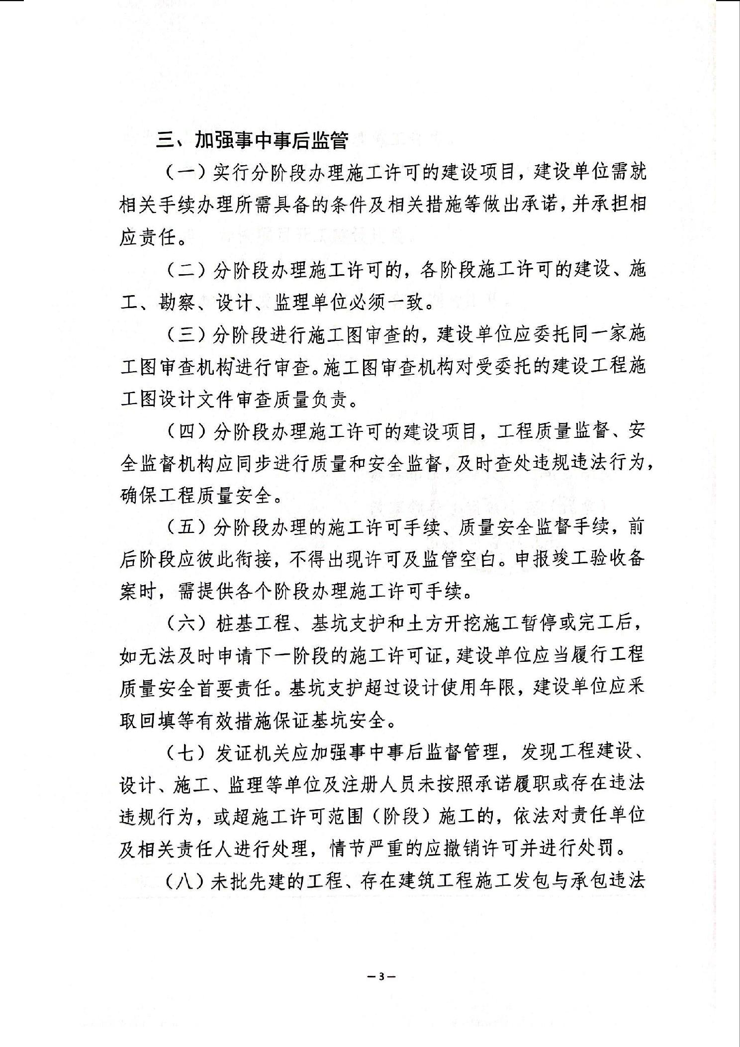 关于房屋建筑工程实行分阶段办理施工许可的通知