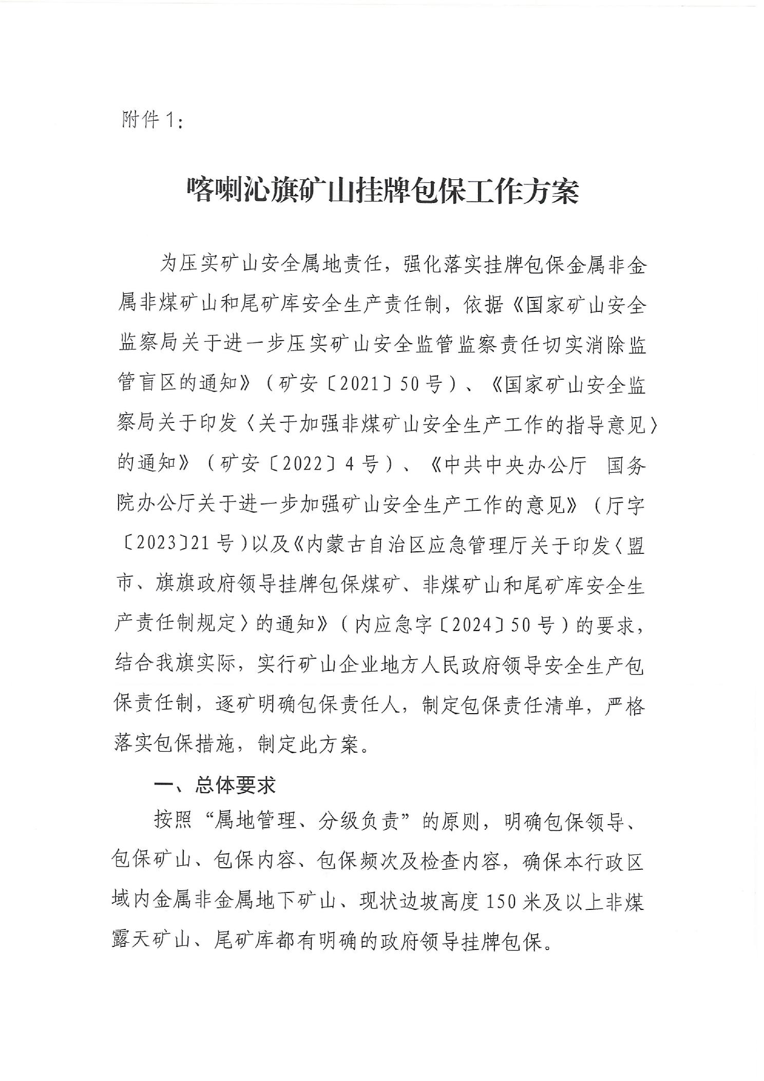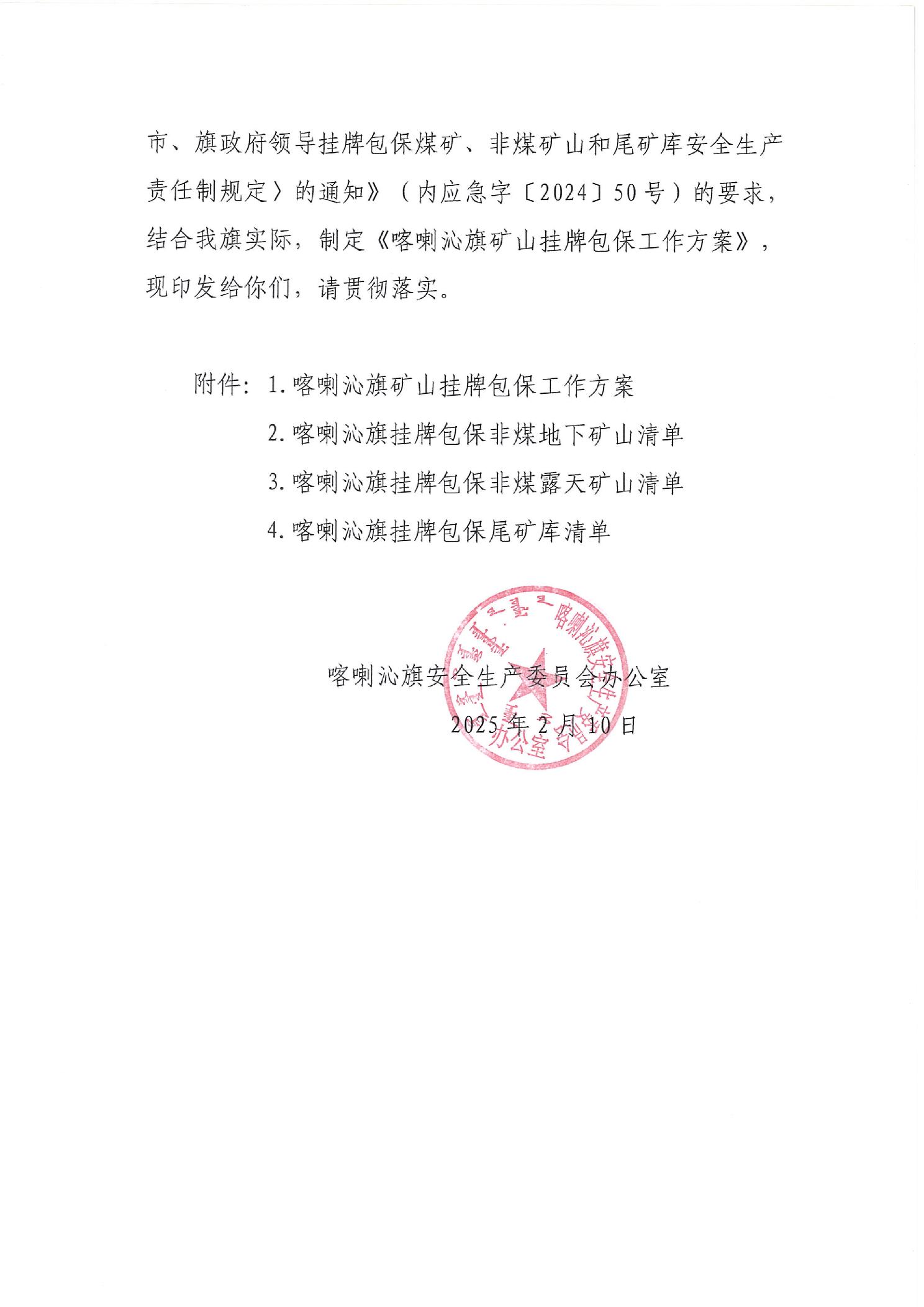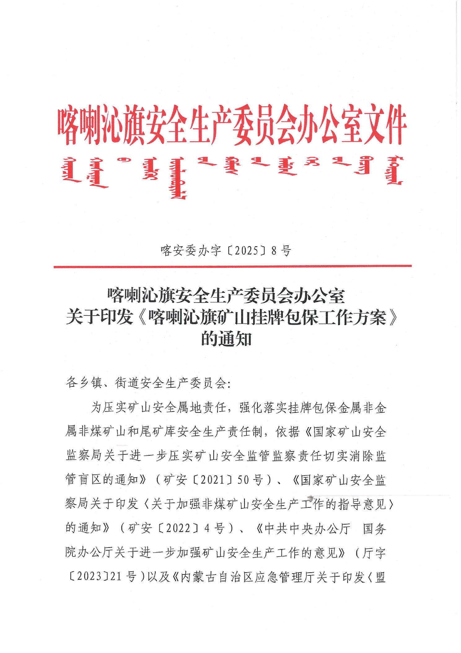 喀喇沁旗安全生产委员会办公室关于印发《喀喇沁旗矿山挂牌包保工作方案》的通知