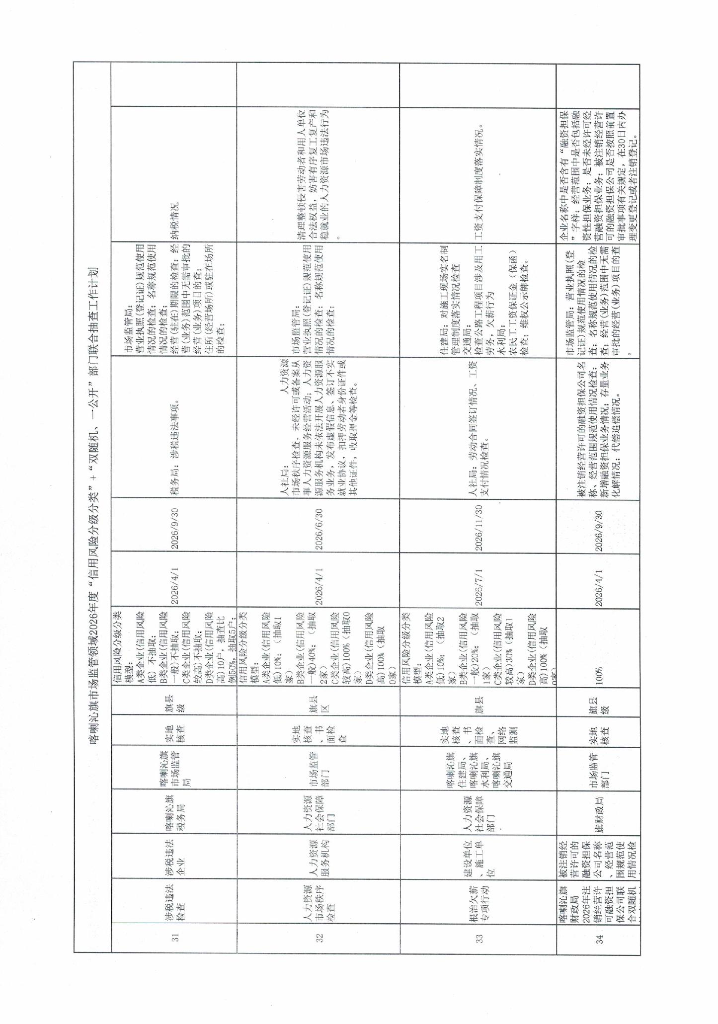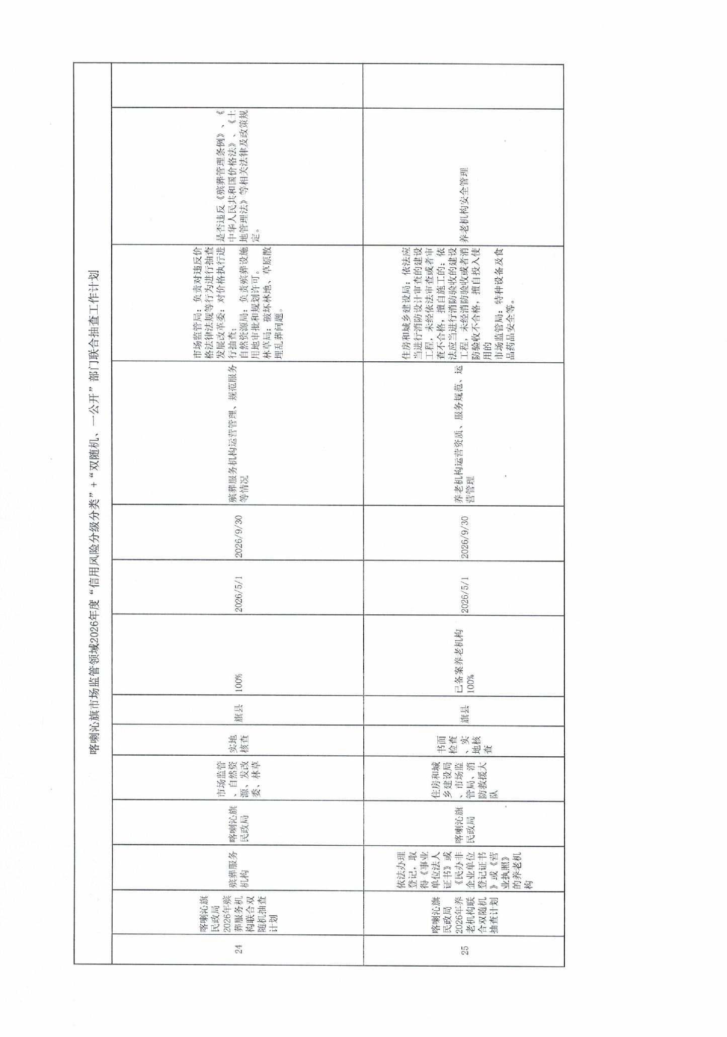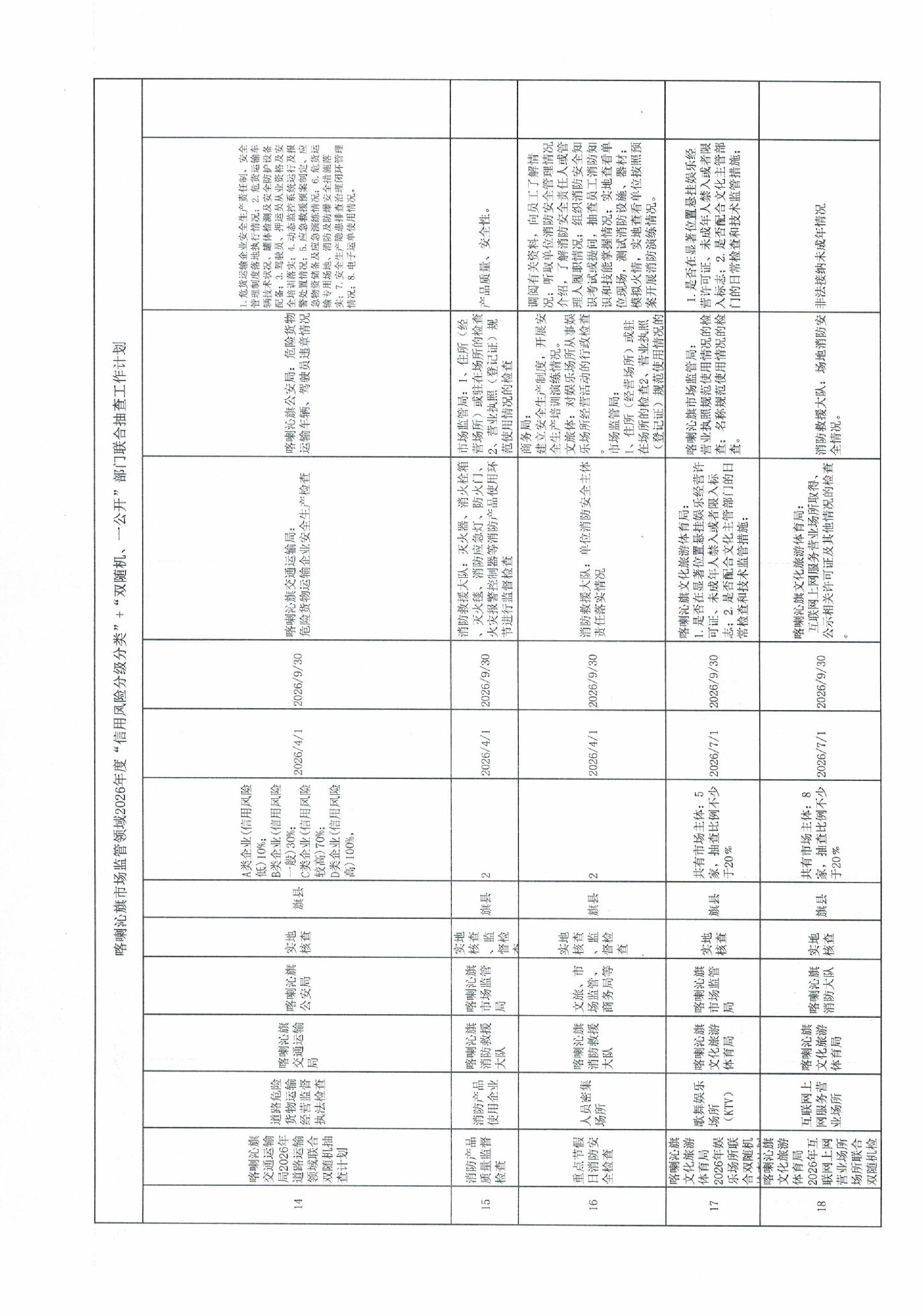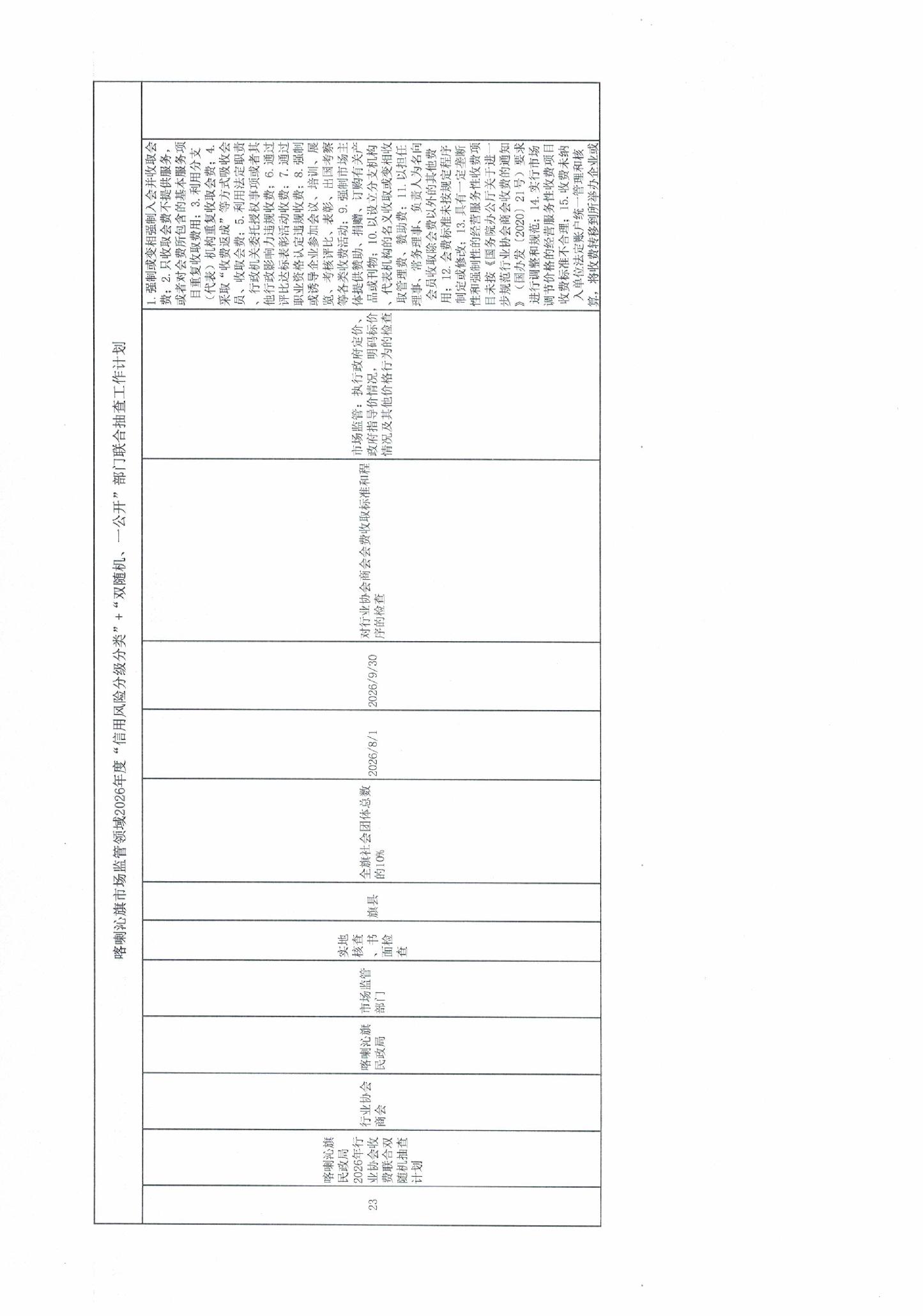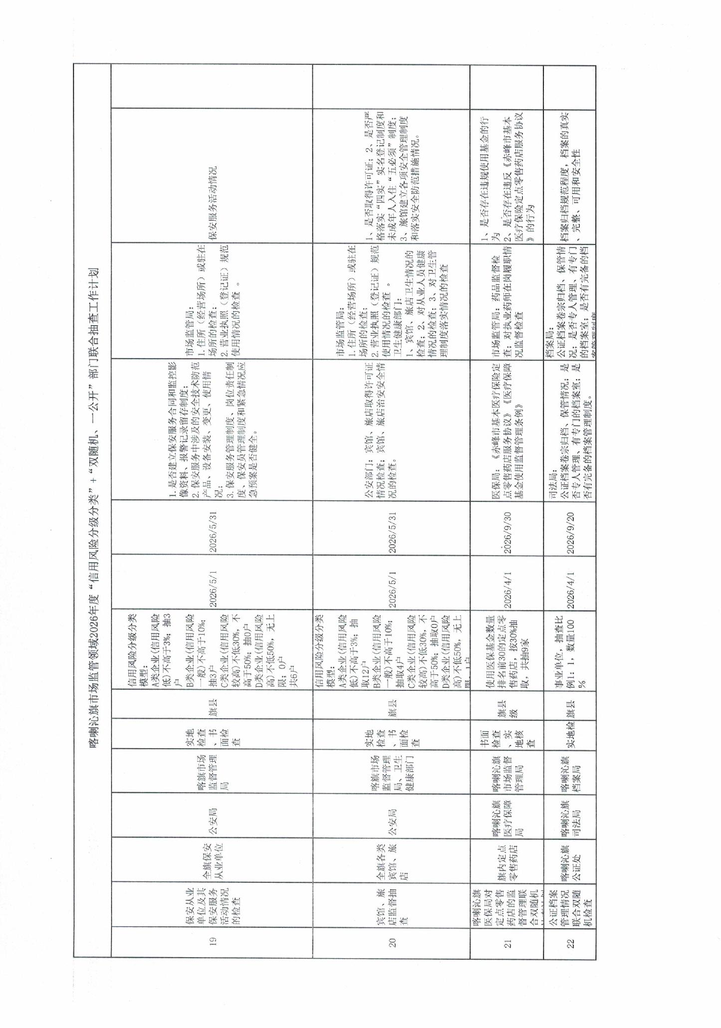 喀喇沁旗市场监管领域2026年度“信用风险分级分类”+“双随机、一公开”部门联合抽查工作计划