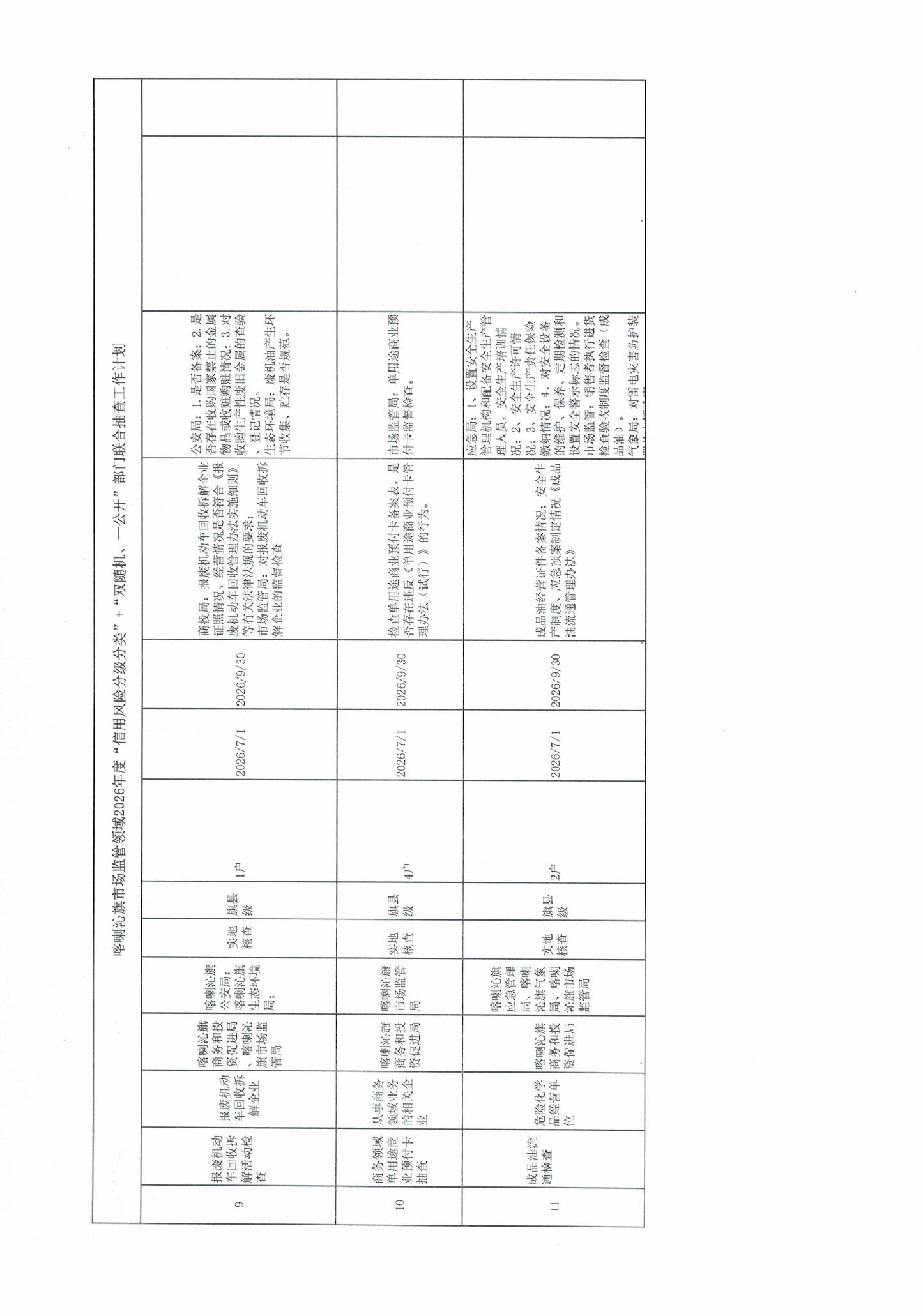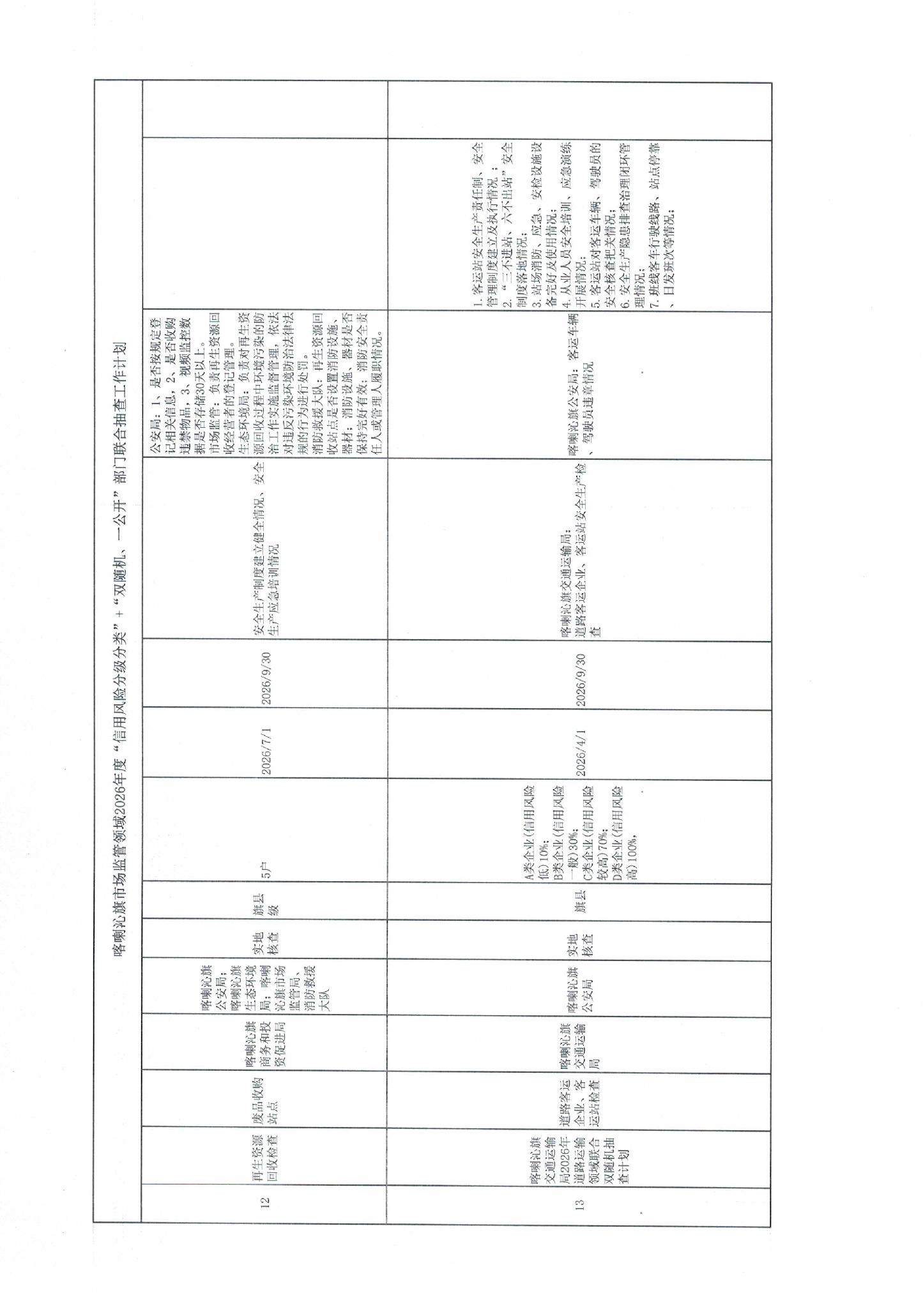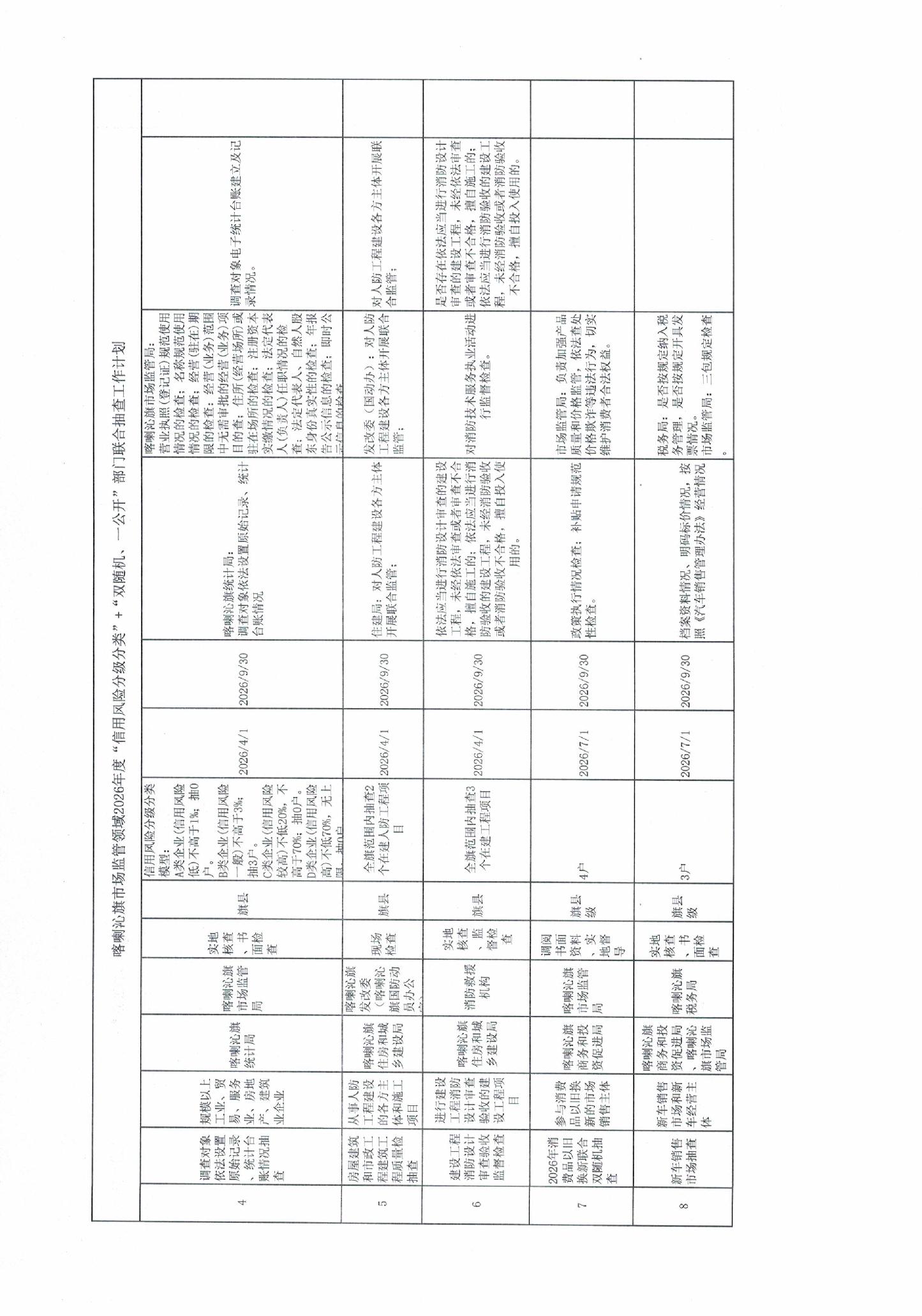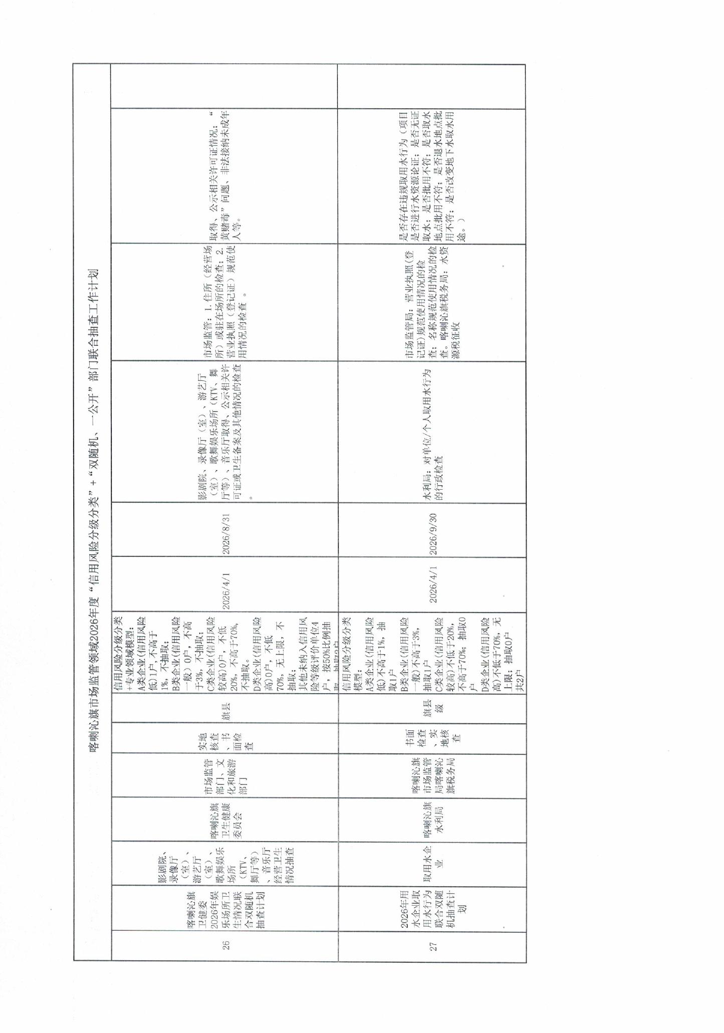 喀喇沁旗市场监管领域2026年度“信用风险分级分类”+“双随机、一公开”部门联合抽查工作计划