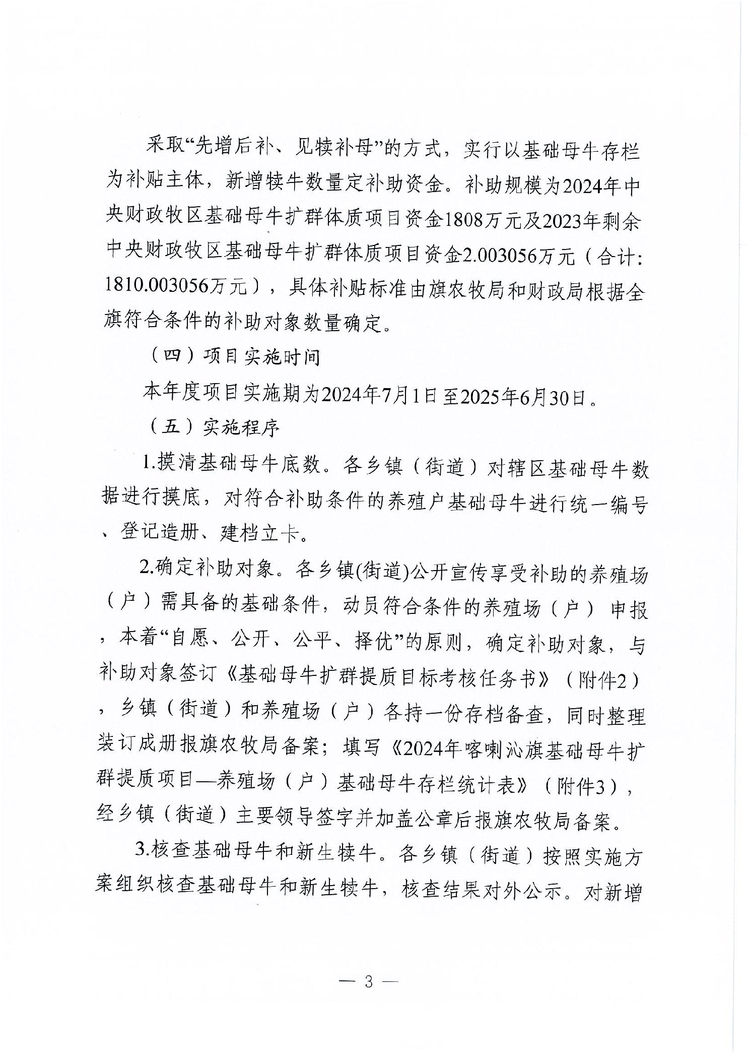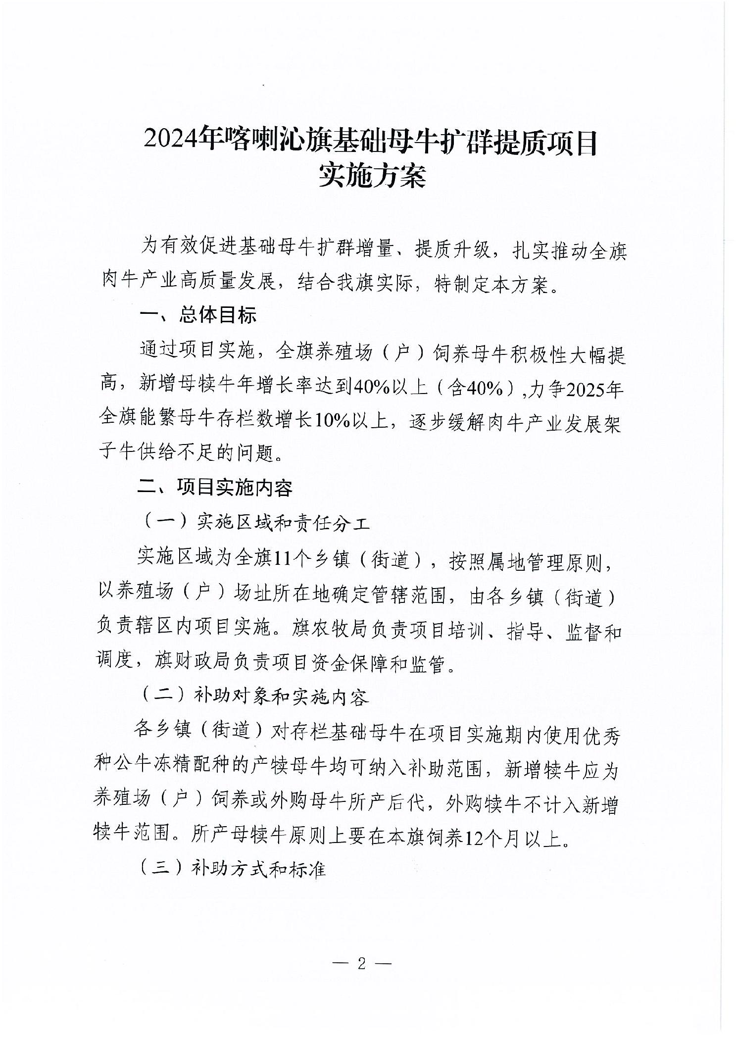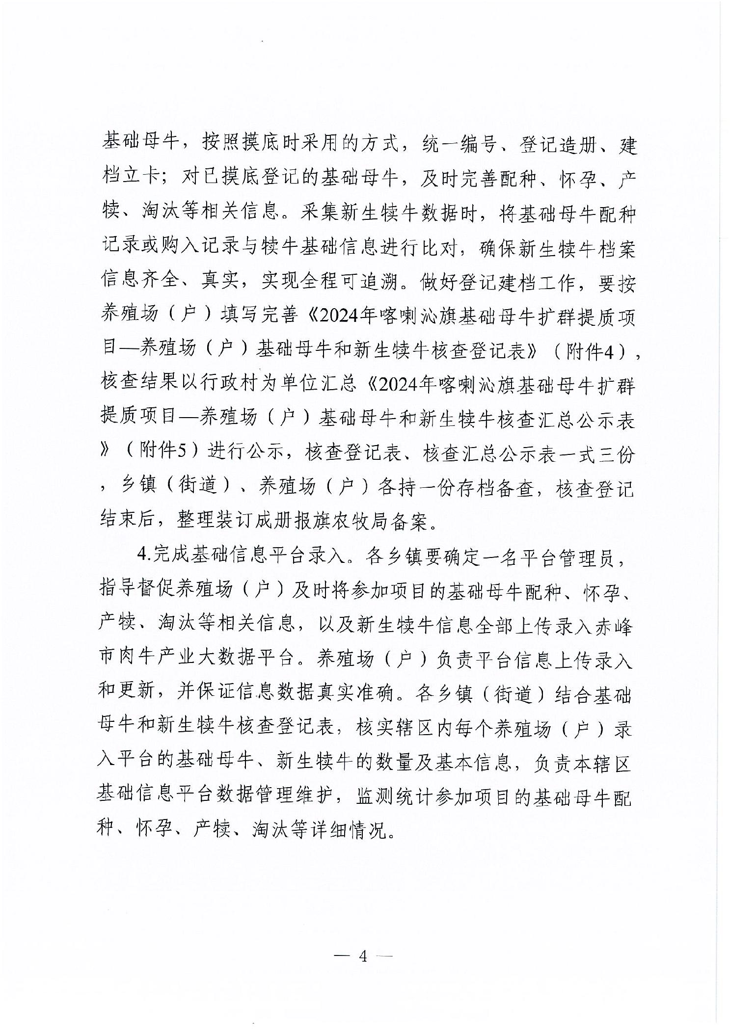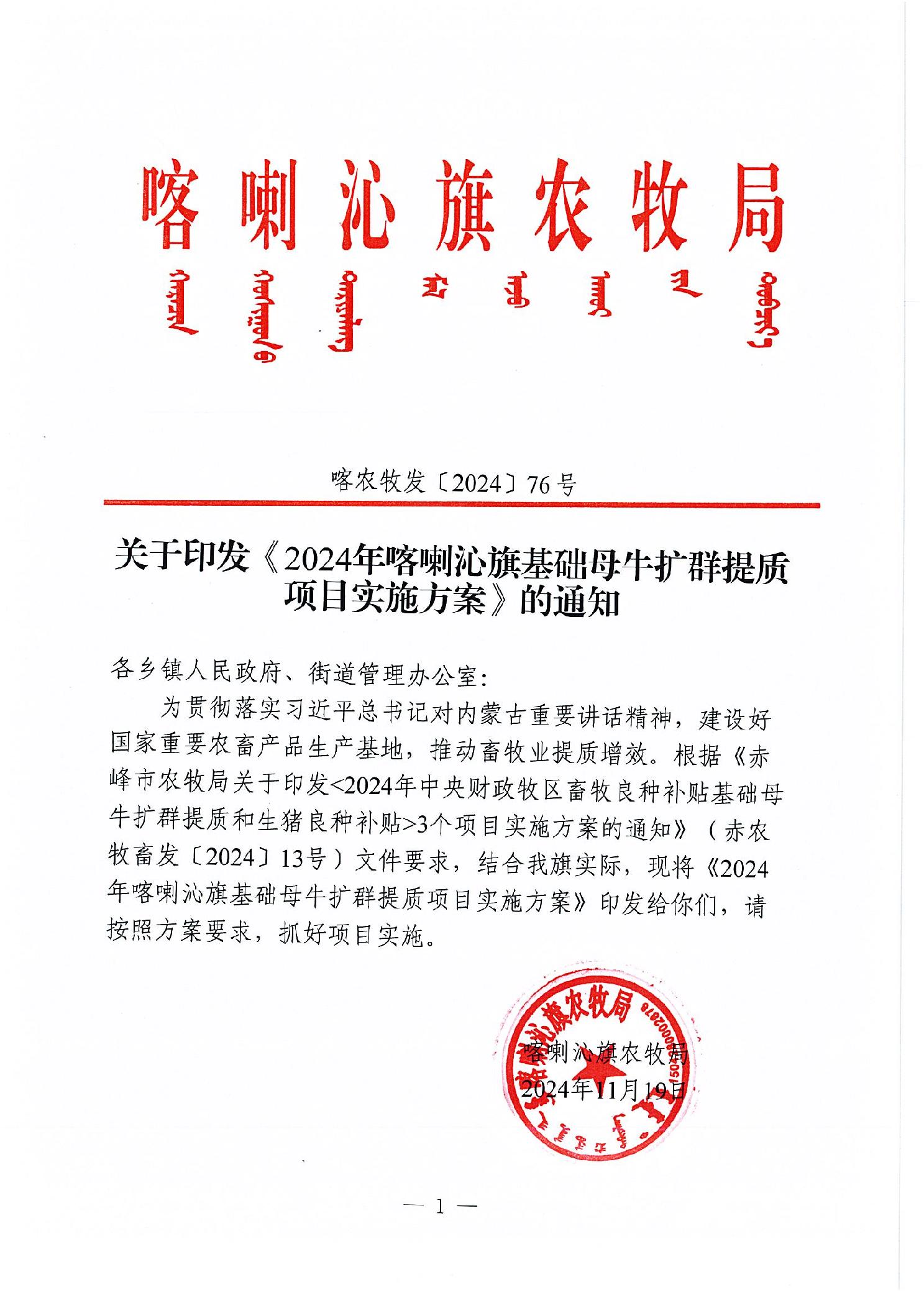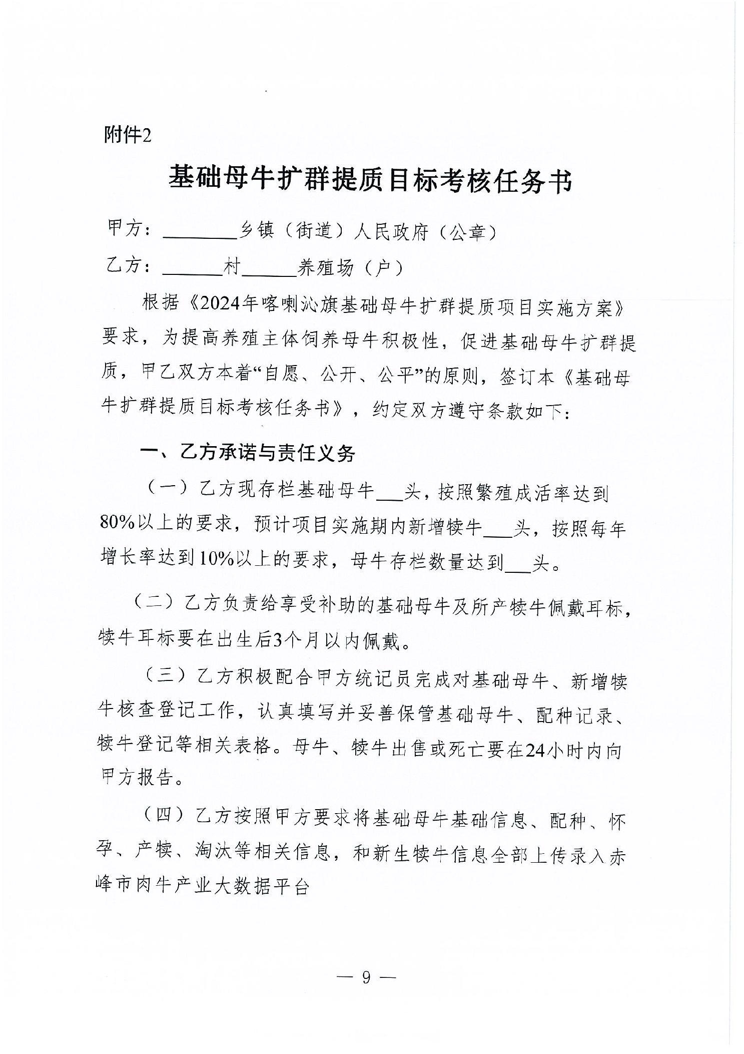 关于印发《2024年喀喇沁旗基础母牛扩群提质项目实施方案》的通知