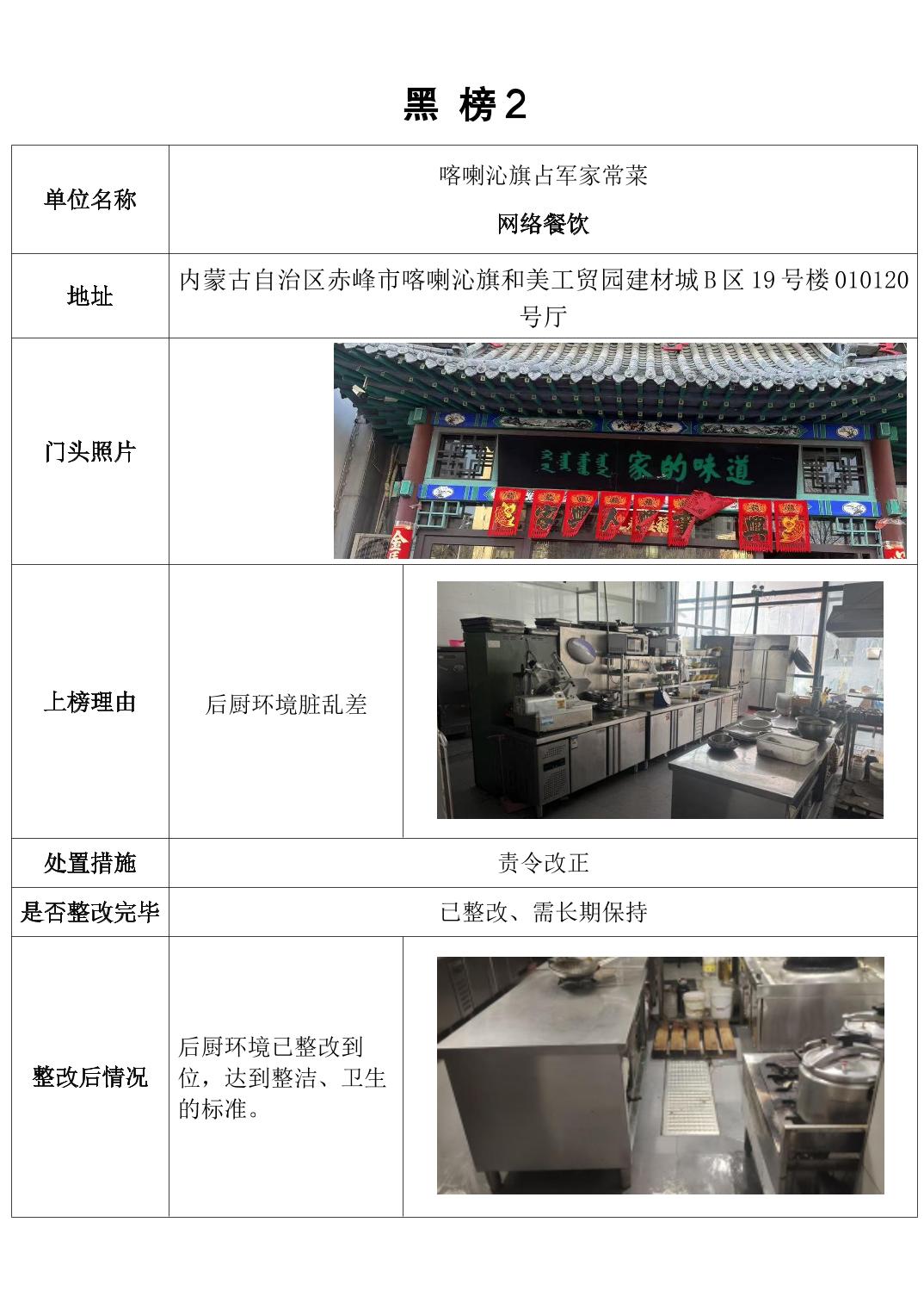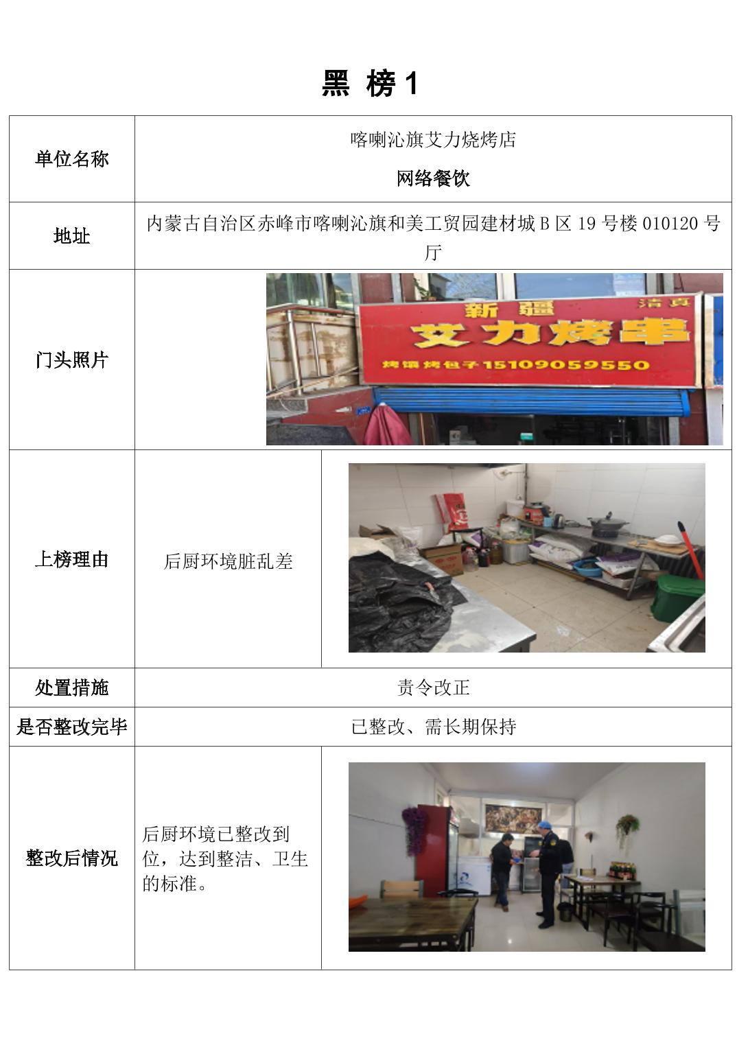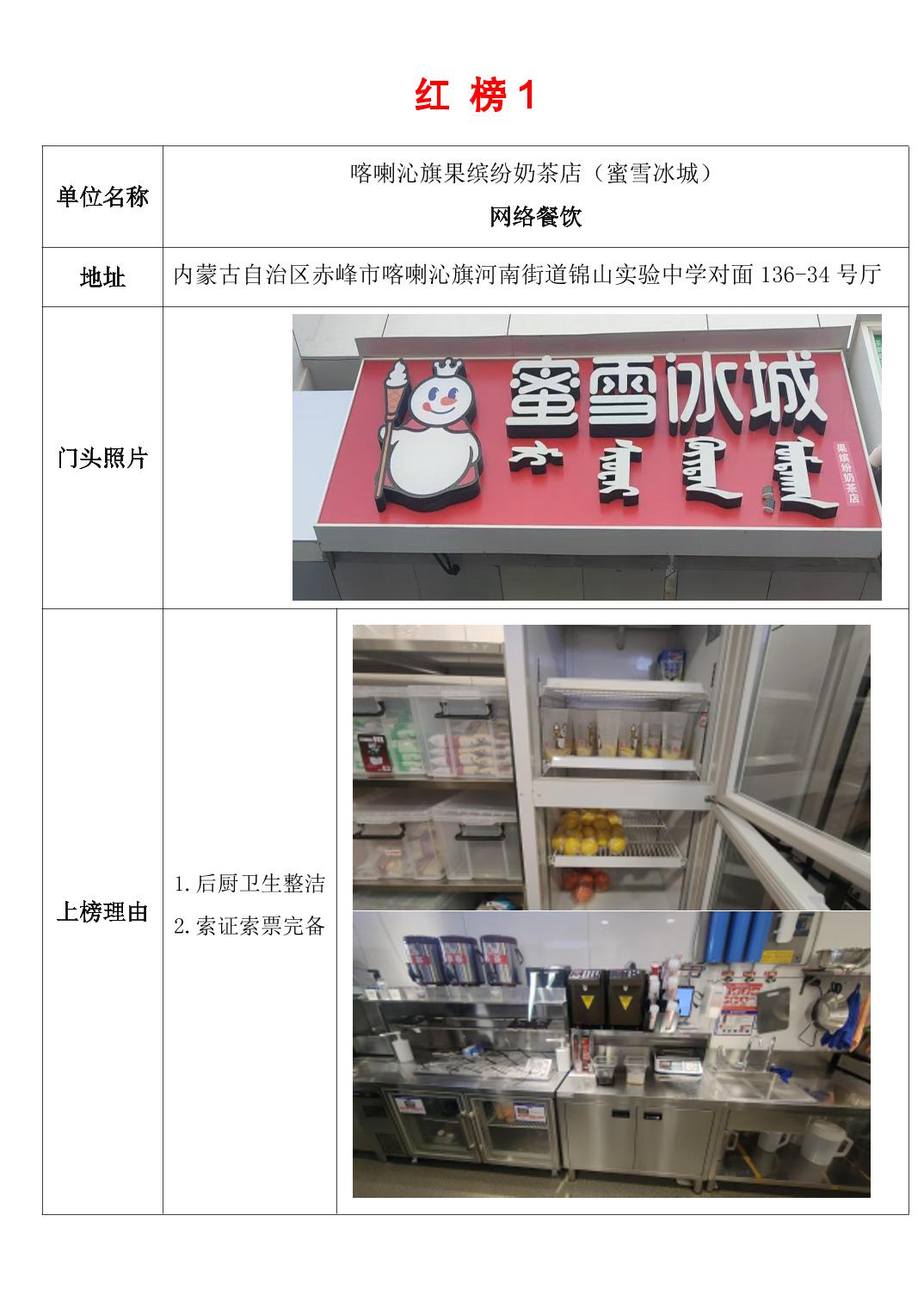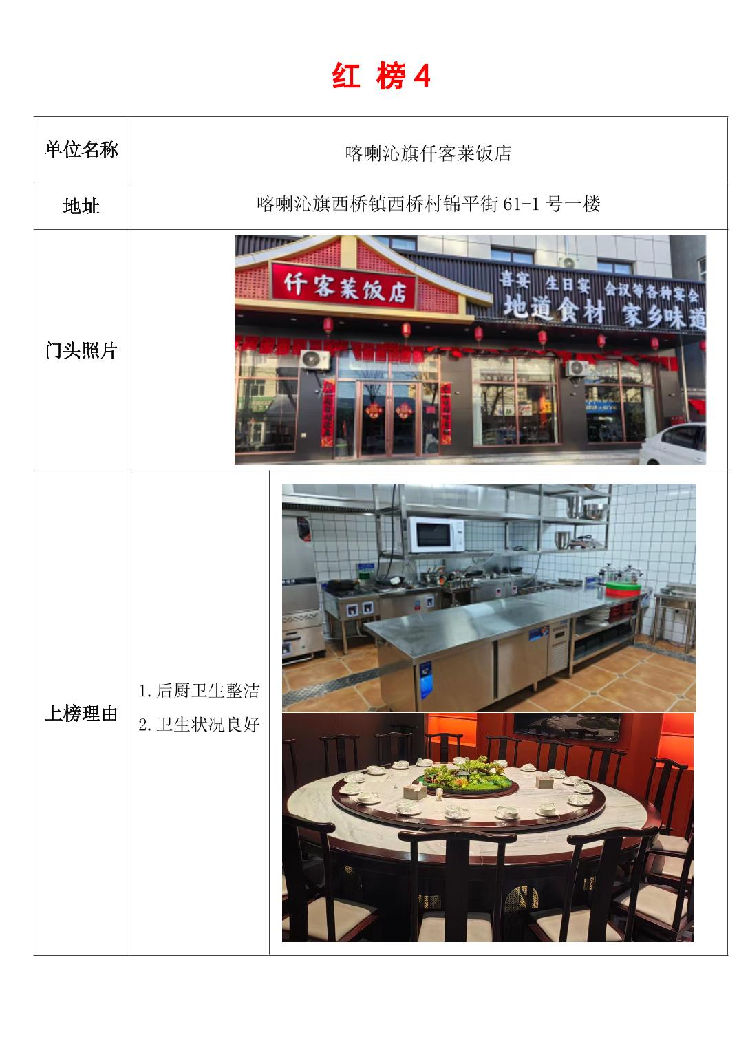 2026年喀喇沁旗餐饮单位网络食品安全“红黑榜” 第一期