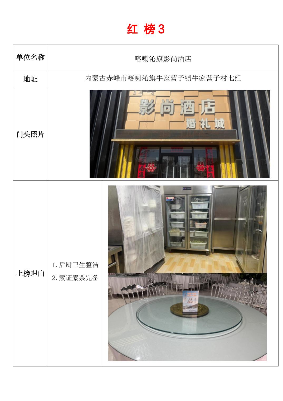 对红榜单位予以公开通报表扬,希望上榜商户珍惜荣誉、再接再厉,持续保持良好经营状态,充分发挥示范引领作用。