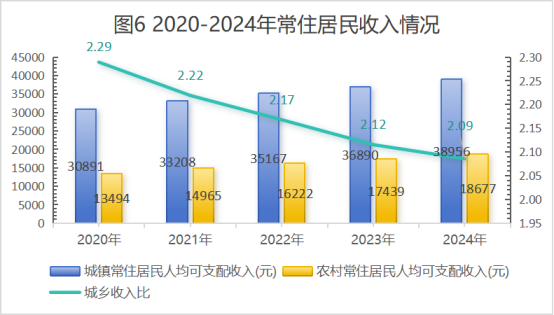 全年全体居民人均可支配收入26636元,增加1672元,增长6.7%;按常住地分,城镇常住居民人均可支配收入38956元,增加2066元,增长5.6%;农村常住居民人均可支配收入18677元,增加1238元,增长7.1%。