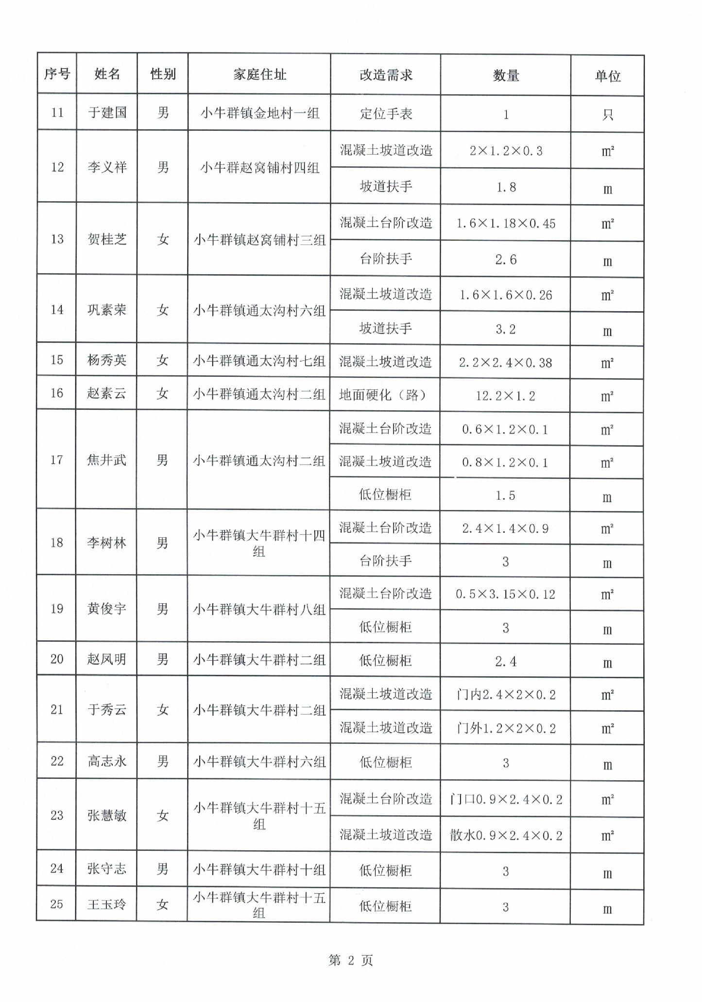 附件:2025年喀喇沁旗困难重度残疾人家庭无障碍改造项目人员名单