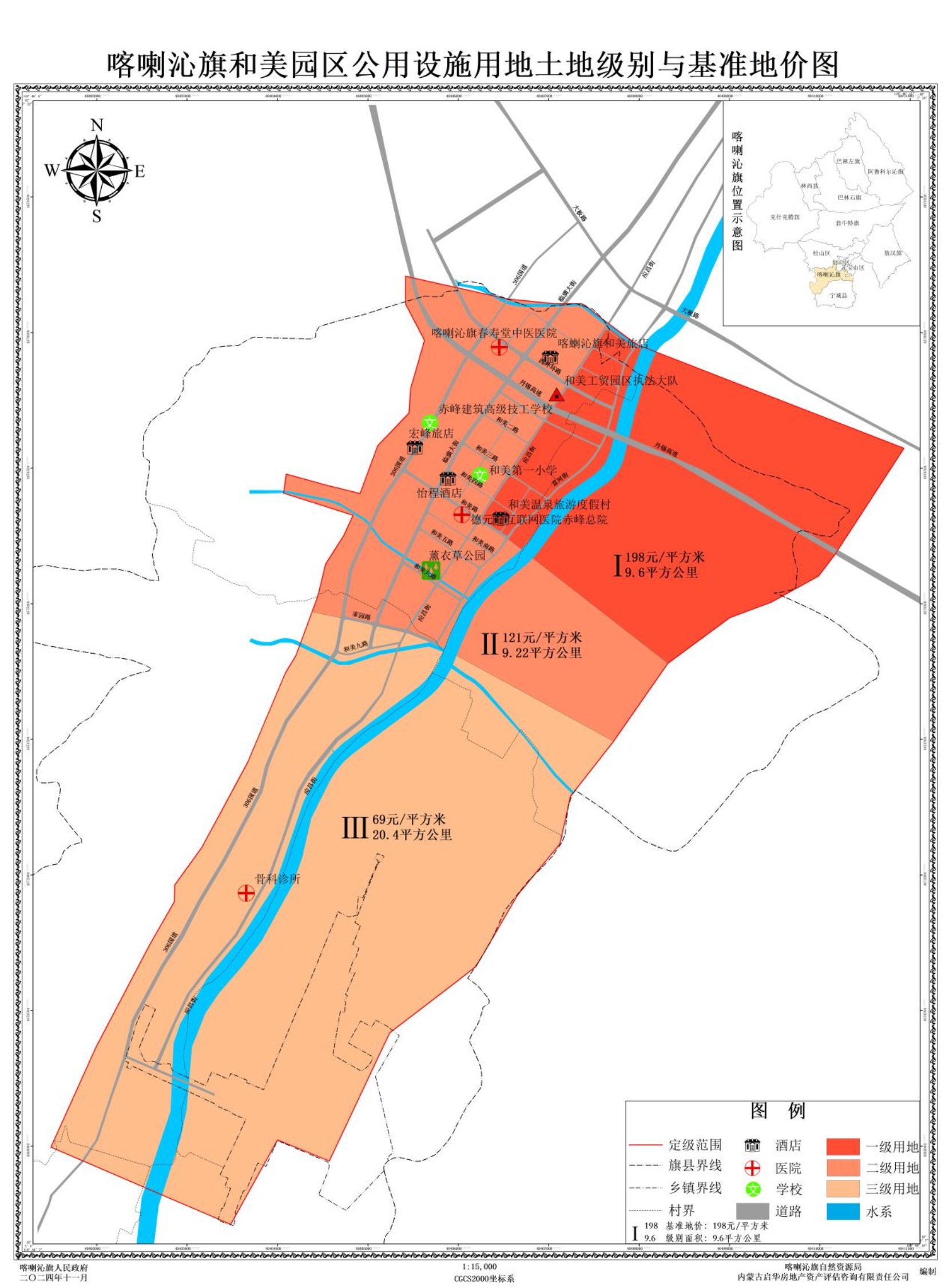 3.喀喇沁旗10个乡镇(园区)土地定级与基准地价图。
