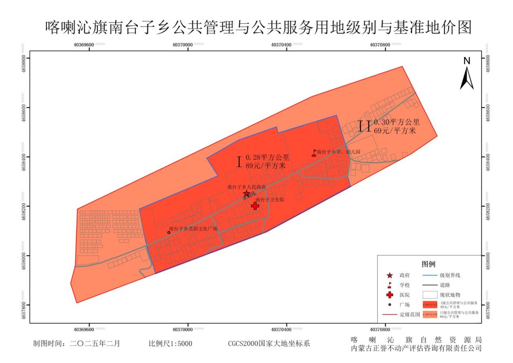 图1-5 公共管理与公共服务用地土地级别与基准地价图
