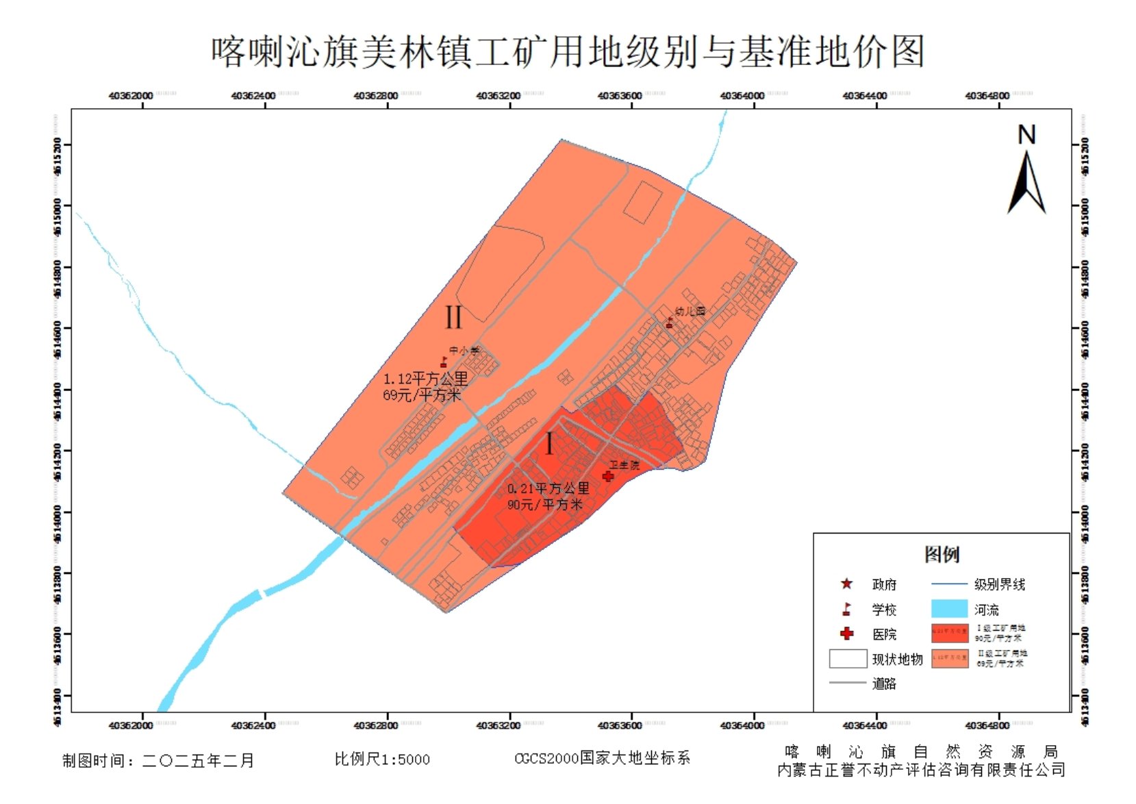 图1-3 工矿用地土地级别与基准地价图
